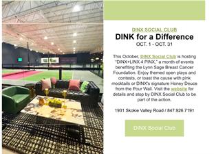 Join us at DINX Social Club every Thursday, Saturday, and Sunday in October for an afternoon full of fun, friendly competition, and a meaningful cause. Play pickleball during our PINK POWER open plays while supporting The Lynn Sage Breast Cancer Foundation. Wear pink, bring your game, and make every point count toward raising awareness and funds for breast cancer research.